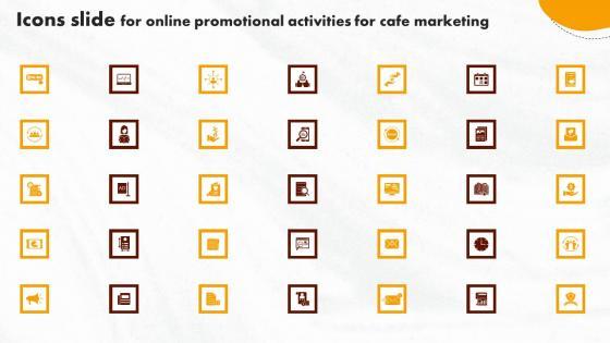 Introducing our well designed Icons Slide For Online Promotional Activities For Cafe Marketing Sample Pdf set of slides. The slide displays editable icons to enhance your visual presentation. The icons can be edited easily. So customize according to your business to achieve a creative edge. Download and share it with your audience. Our Icons Slide For Online Promotional Activities For Cafe Marketing Sample Pdf are topically designed to provide an attractive backdrop to any subject. Use them to look like a presentation pro.