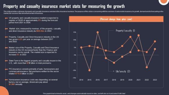 This slide provides a glimpse of property and casualty insurance overview in the insurance business. The purpose of this slide is concerning with the overview of automobile insurance, its growth, demand and its forecasting in the market, the success rate and enhancement of business. Slidegeeks has constructed Property And Casualty Insurance Market Stats For Measuring The Growth Assurant Insurance Agency Inspiration Pdf after conducting extensive research and examination. These presentation templates are constantly being generated and modified based on user preferences and critiques from editors. Here, you will find the most attractive templates for a range of purposes while taking into account ratings and remarks from users regarding the content. This is an excellent jumping-off point to explore our content and will give new users an insight into our top-notch PowerPoint Templates. This slide provides a glimpse of property and casualty insurance overview in the insurance business. The purpose of this slide is concerning with the overview of automobile insurance, its growth, demand and its forecasting in the market, the success rate and enhancement of business.
