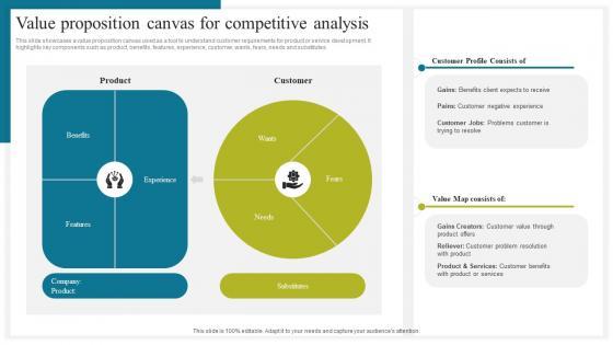 This slide showcases a value proposition canvas used as a tool to understand customer requirements for product or service development. It highlights key components such as product, benefits, features, experience, customer, wants, fears, needs and substitutes. The best PPT templates are a great way to save time, energy, and resources. Slidegeeks have 100 percent editable powerpoint slides making them incredibly versatile. With these quality presentation templates, you can create a captivating and memorable presentation by combining visually appealing slides and effectively communicating your message. Download Value Proposition Canvas For Competitive How To Conduct Competitive Assessment Elements Pdf from Slidegeeks and deliver a wonderful presentation. This slide showcases a value proposition canvas used as a tool to understand customer requirements for product or service development. It highlights key components such as product, benefits, features, experience, customer, wants, fears, needs and substitutes.