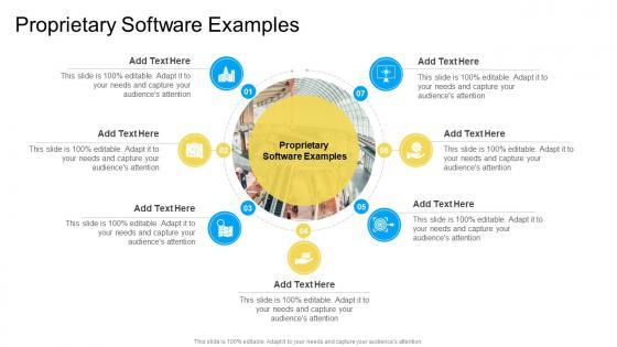 Introducing our well designed Proprietary Software Examples In Powerpoint And Google Slides Cpb. This PowerPoint design presents information on topics like Proprietary Software Examples. As it is predesigned it helps boost your confidence level. It also makes you a better presenter because of its high quality content and graphics. This PPT layout can be downloaded and used in different formats like PDF, PNG, and JPG. Not only this, it is available in both Standard Screen and Widescreen aspect ratios for your convenience. Therefore, click on the download button now to persuade and impress your audience. Our Proprietary Software Examples In Powerpoint And Google Slides Cpb are topically designed to provide an attractive backdrop to any subject. Use them to look like a presentation pro.