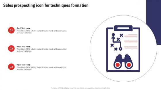 Pitch your topic with ease and precision using this Sales Prospecting Icon For Techniques Formation Ideas Pdf. This layout presents information on Sales Prospecting Icon, Techniques Formation. It is also available for immediate download and adjustment. So, changes can be made in the color, design, graphics or any other component to create a unique layout. Our Sales Prospecting Icon For Techniques Formation Ideas Pdf are topically designed to provide an attractive backdrop to any subject. Use them to look like a presentation pro.