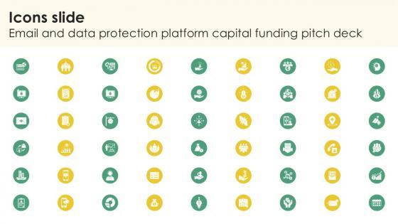 Presenting our innovatively structured Icons Slide Email And Data Protection Platform Capital Funding Pitch Deck PPT Presentation set of slides. The slides contain a hundred100 percent editable icons. You can replace these icons without any inconvenience. Therefore, pick this set of slides and create a striking presentation. Our Icons Slide Email And Data Protection Platform Capital Funding Pitch Deck PPT Presentation are topically designed to provide an attractive backdrop to any subject. Use them to look like a presentation pro.
