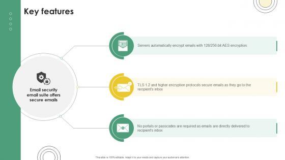 Are you in need of a template that can accommodate all of your creative concepts This one is crafted professionally and can be altered to fit any style. Use it with Google Slides or PowerPoint. Include striking photographs, symbols, depictions, and other visuals. Fill, move around, or remove text boxes as desired. Test out color palettes and font mixtures. Edit and save your work, or work with colleagues. Download Key Features Email And Data Protection Platform Capital Funding Pitch Deck PPT PowerPoint and observe how to make your presentation outstanding. Give an impeccable presentation to your group and make your presentation unforgettable. Our Key Features Email And Data Protection Platform Capital Funding Pitch Deck PPT PowerPoint are topically designed to provide an attractive backdrop to any subject. Use them to look like a presentation pro.
