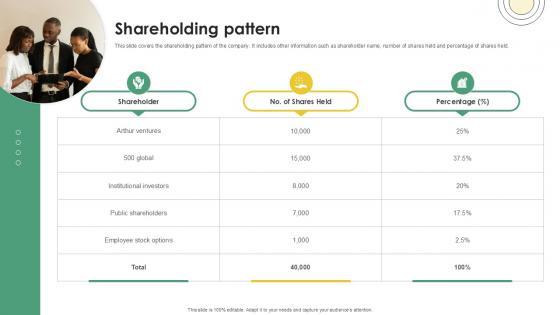 This slide covers the shareholding pattern of the company. It includes other information such as shareholder name, number of shares held and percentage of shares held. This Shareholding Pattern Email And Data Protection Platform Capital Funding Pitch Deck PPT Slide is perfect for any presentation, be it in front of clients or colleagues. It is a versatile and stylish solution for organizing your meetings. The Shareholding Pattern Email And Data Protection Platform Capital Funding Pitch Deck PPT Slide features a modern design for your presentation meetings. The adjustable and customizable slides provide unlimited possibilities for acing up your presentation. Slidegeeks has done all the homework before launching the product for you. So, do not wait, grab the presentation templates today This slide covers the shareholding pattern of the company. It includes other information such as shareholder name, number of shares held and percentage of shares held.