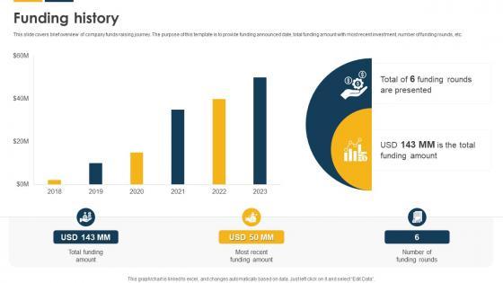 This slide covers brief overview of company funds raising journey. The purpose of this template is to provide funding announced date, total funding amount with most recent investment, number of funding rounds, etc. Slidegeeks is here to make your presentations a breeze with Funding History Payroll Solutions Provider Investor Funding Elevator Pitch Deck With our easy-to-use and customizable templates, you can focus on delivering your ideas rather than worrying about formatting. With a variety of designs to choose from, you are sure to find one that suits your needs. And with animations and unique photos, illustrations, and fonts, you can make your presentation pop. So whether you are giving a sales pitch or presenting to the board, make sure to check out Slidegeeks first This slide covers brief overview of company funds raising journey. The purpose of this template is to provide funding announced date, total funding amount with most recent investment, number of funding rounds, etc.