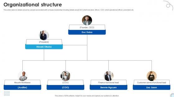 This slide caters to details about key people associated with company leadership including details about CEO chief executive officer, COO chief operational officer, president, etc. Crafting an eye-catching presentation has never been more straightforward. Let your presentation shine with this tasteful yet straightforward Organizational Structure Technology Solutions Provider Investor Funding Elevator Pitch Deck template. It offers a minimalistic and classy look that is great for making a statement. The colors have been employed intelligently to add a bit of playfulness while still remaining professional. Construct the ideal Organizational Structure Technology Solutions Provider Investor Funding Elevator Pitch Deck that effortlessly grabs the attention of your audience Begin now and be certain to wow your customers This slide caters to details about key people associated with company leadership including details about CEO chief executive officer, COO chief operational officer, president, etc.