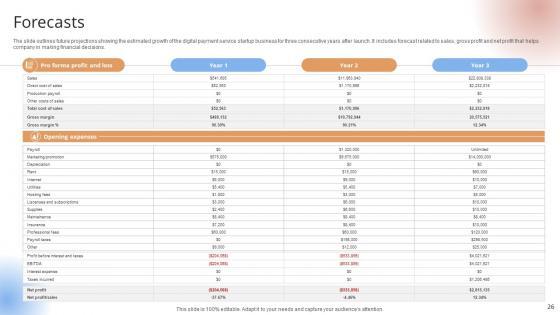 The slide outlines future projections showing the estimated growth of the digital payment service startup business for three consecutive years after launch. It includes forecast related to sales, gross profit and net profit that helps company in making financial decisions.The slide outlines future projections showing the estimated growth of the digital payment service startup business for three consecutive years after launch. It includes forecast related to sales, gross profit and net profit that helps company in making financial decisions.Do you have an important presentation coming up Are you looking for something that will make your presentation stand out from the rest Look no further than Forecasts Payment Gateway Provider Startup GTM Strategy GTM SS V. With our professional designs, you can trust that your presentation will pop and make delivering it a smooth process. And with Slidegeeks, you can trust that your presentation will be unique and memorable. So why wait Grab Forecasts Payment Gateway Provider Startup GTM Strategy GTM SS V today and make your presentation stand out from the rest The slide outlines future projections showing the estimated growth of the digital payment service startup business for three consecutive years after launch. It includes forecast related to sales, gross profit and net profit that helps company in making financial decisions.