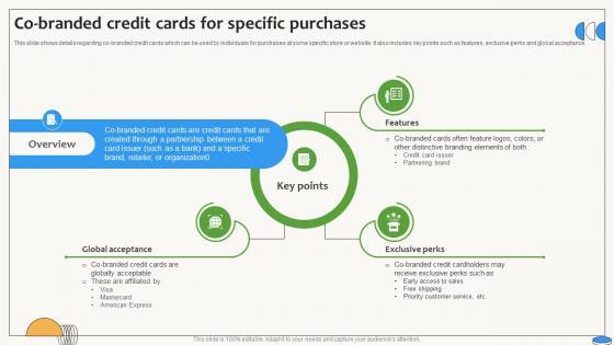 This slide shows details regarding co-branded credit cards which can be used by individuals for purchases at some specific store or website. It also includes key points such as features, exclusive perks and global acceptance. Present like a pro with Co-Branded Credit Cards For Specific Purchases Swipe Smartly A Practical Guide Fin SS V. Create beautiful presentations together with your team, using our easy-to-use presentation slides. Share your ideas in real-time and make changes on the fly by downloading our templates. So whether you are in the office, on the go, or in a remote location, you can stay in sync with your team and present your ideas with confidence. With Slidegeeks presentation got a whole lot easier. Grab these presentations today. This slide shows details regarding co-branded credit cards which can be used by individuals for purchases at some specific store or website. It also includes key points such as features, exclusive perks and global acceptance.