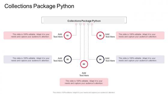 Presenting our innovatively-designed set of slides titled Collections Package Python In Powerpoint And Google Slides Cpb. This completely editable PowerPoint graphic exhibits Collections Package Python that will help you convey the message impactfully. It can be accessed with Google Slides and is available in both standard screen and widescreen aspect ratios. Apart from this, you can download this well-structured PowerPoint template design in different formats like PDF, JPG, and PNG. So, click the download button now to gain full access to this PPT design. Our Collections Package Python In Powerpoint And Google Slides Cpb are topically designed to provide an attractive backdrop to any subject. Use them to look like a presentation pro.