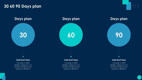 This is a operational efficiency execution strategy improve quality 30 60 90 days plan topics pdf template with various stages. Focus and dispense information on three stages using this creative set, that comes with editable features. It contains large content boxes to add your information on topics like 30 60 90 days plan. You can also showcase facts, figures, and other relevant content using this PPT layout. Grab it now.