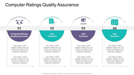 Introducing our well-designed Computer Ratings Quality Assurance In Powerpoint And Google Slides Cpb. This PowerPoint design presents information on topics like Computer Ratings Quality Assurance. As it is predesigned it helps boost your confidence level. It also makes you a better presenter because of its high-quality content and graphics. This PPT layout can be downloaded and used in different formats like PDF, PNG, and JPG. Not only this, it is available in both Standard Screen and Widescreen aspect ratios for your convenience. Therefore, click on the download button now to persuade and impress your audience. Our Computer Ratings Quality Assurance In Powerpoint And Google Slides Cpb are topically designed to provide an attractive backdrop to any subject. Use them to look like a presentation pro.