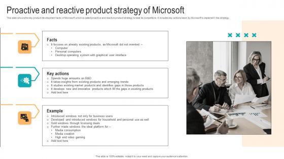 This slide shows the key product development tactic of microsoft which is called proactive and reactive product strategy to beat its competitors. It includes key actions taken by microsoft to implement this strategy. Find a pre-designed and impeccable Micosoft Intensive Growth Proactive And Reactive Product Strategy Of Microsoft Strategy SS V. The templates can ace your presentation without additional effort. You can download these easy-to-edit presentation templates to make your presentation stand out from others. So, what are you waiting for Download the template from Slidegeeks today and give a unique touch to your presentation. This slide shows the key product development tactic of microsoft which is called proactive and reactive product strategy to beat its competitors. It includes key actions taken by microsoft to implement this strategy.