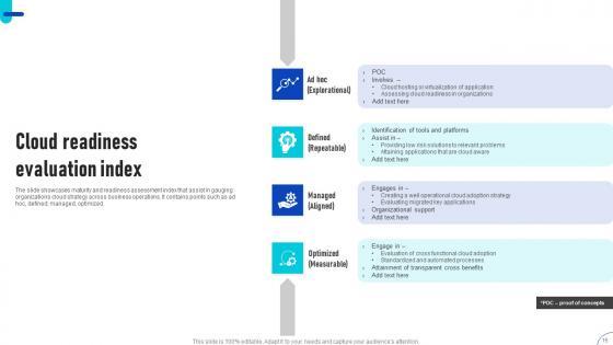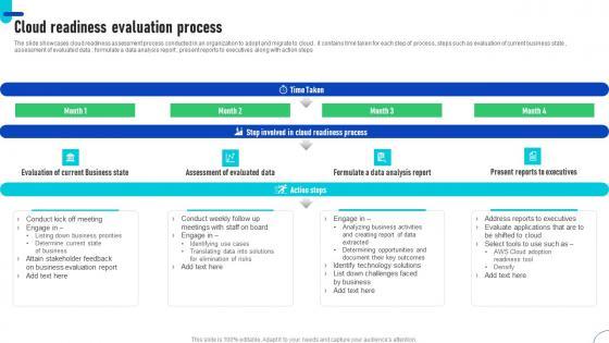 Improve your presentation delivery using this Cloud Readiness Evaluation Ppt PowerPoint Presentation Complete Deck With Slides. Support your business vision and objectives using this well-structured PPT deck. This template offers a great starting point for delivering beautifully designed presentations on the topic of your choice. Comprising twenty slides this professionally designed template is all you need to host discussion and meetings with collaborators. Each slide is self-explanatory and equipped with high-quality graphics that can be adjusted to your needs. Therefore, you will face no difficulty in portraying your desired content using this PPT slideshow. This PowerPoint slideshow contains every important element that you need for a great pitch. It is not only editable but also available for immediate download and utilization. The color, font size, background, shapes everything can be modified to create your unique presentation layout. Therefore, download it now. Our Cloud Readiness Evaluation Ppt PowerPoint Presentation Complete Deck With Slides are topically designed to provide an attractive backdrop to any subject. Use them to look like a presentation pro.