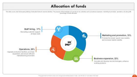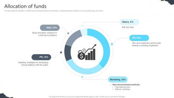 The slide exhibits the allocation of raised funds in business areas such as marketing, website development, adding new services, technology, and others. Find a pre-designed and impeccable Allocation Of Funds Real Estate Platform Investor Funding Elevator Pitch Deck. The templates can ace your presentation without additional effort. You can download these easy-to-edit presentation templates to make your presentation stand out from others. So, what are you waiting for Download the template from Slidegeeks today and give a unique touch to your presentation. The slide exhibits the allocation of raised funds in business areas such as marketing, website development, adding new services, technology, and others.