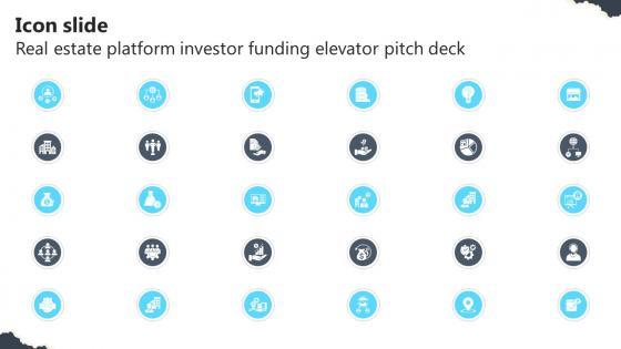Presenting our innovatively structured Icon Slide Real Estate Platform Investor Funding Elevator Pitch Deck set of slides. The slides contain a hundred percent editable icons. You can replace these icons without any inconvenience. Therefore, pick this set of slides and create a striking presentation. Our Icon Slide Real Estate Platform Investor Funding Elevator Pitch Deck are topically designed to provide an attractive backdrop to any subject. Use them to look like a presentation pro.