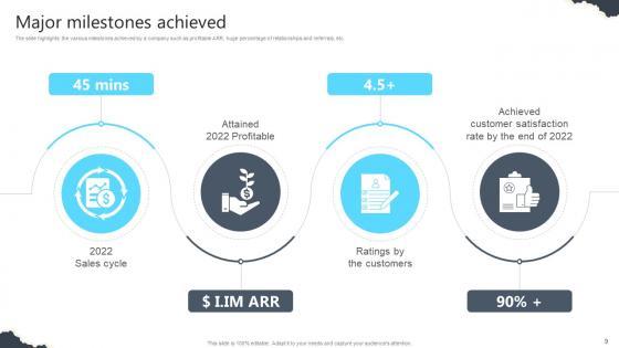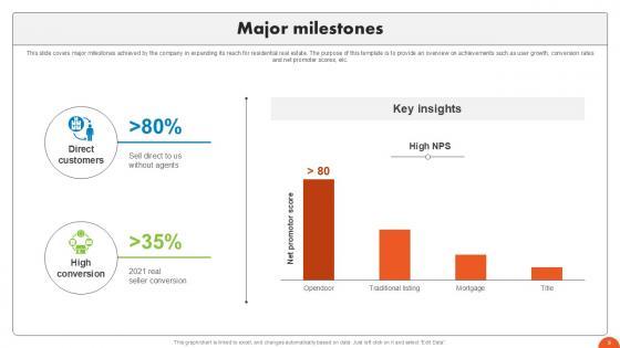 The slide highlights the various milestones achieved by a company such as profitable ARR, huge percentage of relationships and referrals, etc. If your project calls for a presentation, then Slidegeeks is your go-to partner because we have professionally designed, easy-to-edit templates that are perfect for any presentation. After downloading, you can easily edit Major Milestones Achieved Real Estate Platform Investor Funding Elevator Pitch Deck and make the changes accordingly. You can rearrange slides or fill them with different images. Check out all the handy templates The slide highlights the various milestones achieved by a company such as profitable ARR, huge percentage of relationships and referrals, etc.