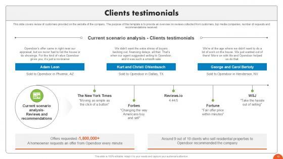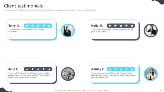 The slide illustrates the client testimonials highlighting the viewpoints of the companys happy customers such as Terry K, Kelly M, Ashley C and Jane C. Create an editable Client Testimonials Real Estate Platform Investor Funding Elevator Pitch Deck that communicates your idea and engages your audience. Whether you are presenting a business or an educational presentation, pre-designed presentation templates help save time. Client Testimonials Real Estate Platform Investor Funding Elevator Pitch Deck is highly customizable and very easy to edit, covering many different styles from creative to business presentations. Slidegeeks has creative team members who have crafted amazing templates. So, go and get them without any delay. The slide illustrates the client testimonials highlighting the viewpoints of the companys happy customers such as Terry K, Kelly M, Ashley C and Jane C.