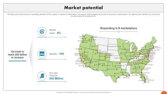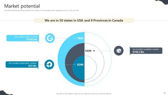 The slide represents the market potential of the company in the real estate market highlighting the TAM, SOM and SAM. If you are looking for a format to display your unique thoughts, then the professionally designed Market Potential Real Estate Platform Investor Funding Elevator Pitch Deck is the one for you. You can use it as a Google Slides template or a PowerPoint template. Incorporate impressive visuals, symbols, images, and other charts. Modify or reorganize the text boxes as you desire. Experiment with shade schemes and font pairings. Alter, share or cooperate with other people on your work. Download Market Potential Real Estate Platform Investor Funding Elevator Pitch Deck and find out how to give a successful presentation. Present a perfect display to your team and make your presentation unforgettable. The slide represents the market potential of the company in the real estate market highlighting the TAM, SOM and SAM.