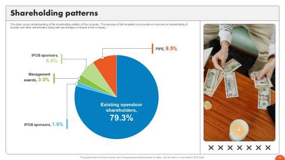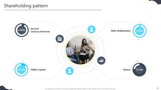 The slide mentions the number of shares each business partner holds, such as TIMIA Capital, Second Century Ventures, Mike Walkinshaw and other shareholders. This Shareholding Pattern Real Estate Platform Investor Funding Elevator Pitch Deck is perfect for any presentation, be it in front of clients or colleagues. It is a versatile and stylish solution for organizing your meetings. The Shareholding Pattern Real Estate Platform Investor Funding Elevator Pitch Deck features a modern design for your presentation meetings. The adjustable and customizable slides provide unlimited possibilities for acing up your presentation. Slidegeeks has done all the homework before launching the product for you. So, do not wait, grab the presentation templates today. The slide mentions the number of shares each business partner holds, such as TIMIA Capital, Second Century Ventures, Mike Walkinshaw and other shareholders.