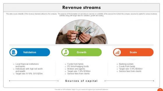 The slide mentions the main source of revenue for the company. It represents revenue sources such as businesses, real estate agents, homeowners and other sources such as training, playbooks, etc. This modern and well-arranged Revenue Stream Real Estate Platform Investor Funding Elevator Pitch Deck provides lots of creative possibilities. It is very simple to customize and edit with the Powerpoint Software. Just drag and drop your pictures into the shapes. All facets of this template can be edited with Powerpoint, no extra software is necessary. Add your own material, put your images in the places assigned for them, adjust the colors, and then you can show your slides to the world, with an animated slide included. The slide mentions the main source of revenue for the company. It represents revenue sources such as businesses, real estate agents, homeowners and other sources such as training, playbooks, etc.