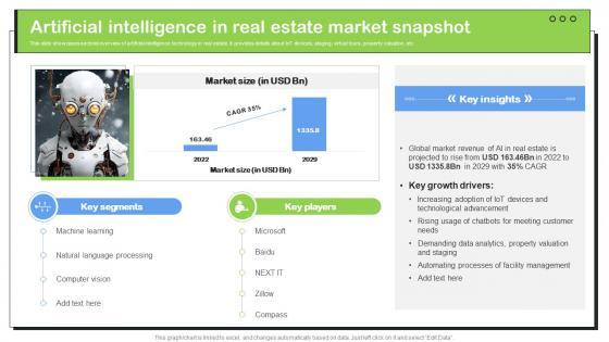 This slide showcases sectoral overview of artificial intelligence technology in real estate. It provides details about IoT devices, staging, virtual tours, property valuation, etc. Do you have to make sure that everyone on your team knows about any specific topic I yes, then you should give Transforming Real Estate Artificial Intelligence In Real Estate Market Snapshot ChatGPT SS V a try. Our experts have put a lot of knowledge and effort into creating this impeccable Transforming Real Estate Artificial Intelligence In Real Estate Market Snapshot ChatGPT SS V. You can use this template for your upcoming presentations, as the slides are perfect to represent even the tiniest detail. You can download these templates from the Slidegeeks website and these are easy to edit. So grab these today This slide showcases sectoral overview of artificial intelligence technology in real estate. It provides details about IoT devices, staging, virtual tours, property valuation, etc.