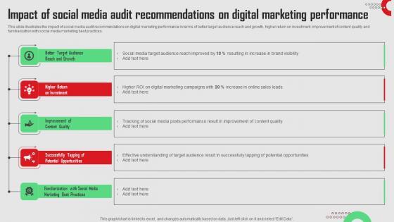 This slide illustrates the impact of social media audit recommendations on digital marketing performance in terms of better target audience reach and growth, higher return on investment, improvement of content quality and familiarization with social media marketing best practices.Get a simple yet stunning designed Impact Of Social Media Audit Recommendations Social Media Platforms Performance Guidelines Pdf. It is the best one to establish the tone in your meetings. It is an excellent way to make your presentations highly effective. So, download this PPT today from Slidegeeks and see the positive impacts. Our easy-to-edit Impact Of Social Media Audit Recommendations Social Media Platforms Performance Guidelines Pdf can be your go-to option for all upcoming conferences and meetings. So, what are you waiting for Grab this template today. This slide illustrates the impact of social media audit recommendations on digital marketing performance in terms of better target audience reach and growth, higher return on investment, improvement of content quality and familiarization with social media marketing best practices.