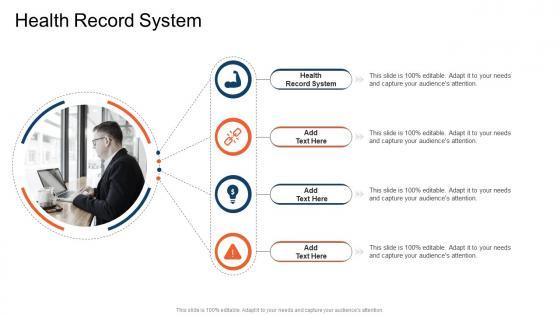 Introducing our well-designed Health Record System In Powerpoint And Google Slides Cpb. This PowerPoint design presents information on topics like Health Record System. As it is predesigned it helps boost your confidence level. It also makes you a better presenter because of its high-quality content and graphics. This PPT layout can be downloaded and used in different formats like PDF, PNG, and JPG. Not only this, it is available in both Standard Screen and Widescreen aspect ratios for your convenience. Therefore, click on the download button now to persuade and impress your audience. Our Health Record System In Powerpoint And Google Slides Cpb are topically designed to provide an attractive backdrop to any subject. Use them to look like a presentation pro.