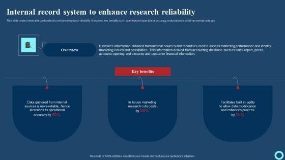 This slide covers internal record system to enhance research reliability. It involves key benefits such as enhanced operational accuracy, reduced costs and improved processes. Formulating a presentation can take up a lot of effort and time, so the content and message should always be the primary focus. The visuals of the PowerPoint can enhance the presenters message, so our Internal Record System To Enhance Research Reliability Structure PDF was created to help save time. Instead of worrying about the design, the presenter can concentrate on the message while our designers work on creating the ideal templates for whatever situation is needed. Slidegeeks has experts for everything from amazing designs to valuable content, we have put everything into Internal Record System To Enhance Research Reliability Structure PDF