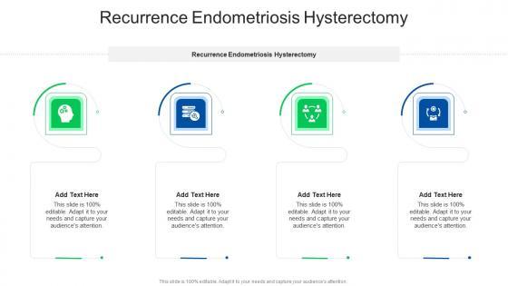 Presenting our innovatively designed set of slides titled Recurrence Endometriosis Hysterectomy In Powerpoint And Google Slides Cpb This completely editable PowerPoint graphic exhibits Recurrence Endometriosis Hysterectomy that will help you convey the message impactfully. It can be accessed with Google Slides and is available in both standard screen and widescreen aspect ratios. Apart from this, you can download this well structured PowerPoint template design in different formats like PDF, JPG, and PNG. So, click the download button now to gain full access to this PPT design. Our Recurrence Endometriosis Hysterectomy In Powerpoint And Google Slides Cpb are topically designed to provide an attractive backdrop to any subject. Use them to look like a presentation pro.
