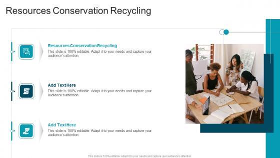 Presenting our innovatively designed set of slides titled Resources Conservation Recycling In Powerpoint And Google Slides Cpb This completely editable PowerPoint graphic exhibits Resources Conservation Recycling that will help you convey the message impactfully. It can be accessed with Google Slides and is available in both standard screen and widescreen aspect ratios. Apart from this, you can download this well structured PowerPoint template design in different formats like PDF, JPG, and PNG. So, click the download button now to gain full access to this PPT design. Our Resources Conservation Recycling In Powerpoint And Google Slides Cpb are topically designed to provide an attractive backdrop to any subject. Use them to look like a presentation pro.