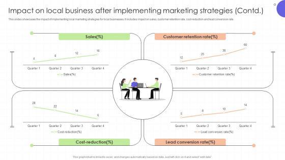 This slides showcases the impact of implementing local marketing strategies for local businesses. It includes impact on foot traffic, customer satisfaction rate, customer bounce rate and ROIreturn on investment.Present like a pro with Impact On Local Business After Implementing Marketing Regional Marketing Plan To Boost Sales MKT SS. Create beautiful presentations together with your team, using our easy-to-use presentation slides. Share your ideas in real-time and make changes on the fly by downloading our templates. So whether you are in the office, on the go, or in a remote location, you can stay in sync with your team and present your ideas with confidence. With Slidegeeks presentation got a whole lot easier. Grab these presentations today. This slides showcases the impact of implementing local marketing strategies for local businesses. It includes impact on foot traffic, customer satisfaction rate, customer bounce rate and ROIreturn on investment.