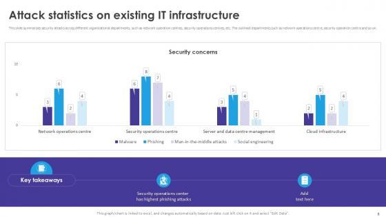 This slide summarizes security attacks across different organizational departments, such as network operation centres, security operations centres, etc. The outlined departments such as network operations centre, security operation centre and so on. Boost your pitch with our creative Attack Statistics On Existing Automated Regression Testing And Achieving PPT Slide Deliver an awe-inspiring pitch that will mesmerize everyone. Using these presentation templates you will surely catch everyones attention. You can browse the ppts collection on our website. We have researchers who are experts at creating the right content for the templates. So you do not have to invest time in any additional work. Just grab the template now and use them. This slide summarizes security attacks across different organizational departments, such as network operation centres, security operations centres, etc. The outlined departments such as network operations centre, security operation centre and so on.
