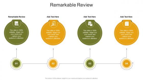 Introducing our well designed Remarkable Review In Powerpoint And Google Slides Cpb. This PowerPoint design presents information on topics like Remarkable Review. As it is predesigned it helps boost your confidence level. It also makes you a better presenter because of its high quality content and graphics. This PPT layout can be downloaded and used in different formats like PDF, PNG, and JPG. Not only this, it is available in both Standard Screen and Widescreen aspect ratios for your convenience. Therefore, click on the download button now to persuade and impress your audience. Our Remarkable Review In Powerpoint And Google Slides Cpb are topically designed to provide an attractive backdrop to any subject. Use them to look like a presentation pro.