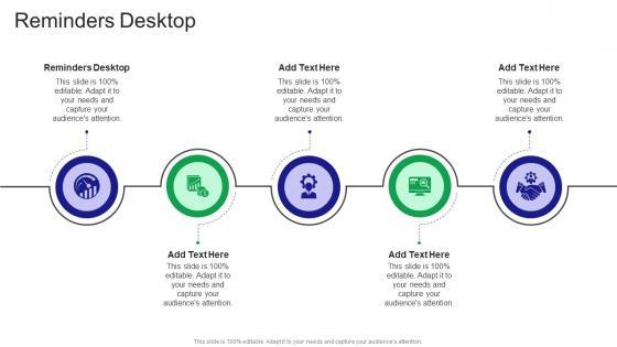 Introducing our well designed Reminders Desktop In Powerpoint And Google Slides Cpb. This PowerPoint design presents information on topics like Reminders Desktop. As it is predesigned it helps boost your confidence level. It also makes you a better presenter because of its high quality content and graphics. This PPT layout can be downloaded and used in different formats like PDF, PNG, and JPG. Not only this, it is available in both Standard Screen and Widescreen aspect ratios for your convenience. Therefore, click on the download button now to persuade and impress your audience. Our Reminders Desktop In Powerpoint And Google Slides Cpb are topically designed to provide an attractive backdrop to any subject. Use them to look like a presentation pro.
