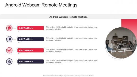 Presenting our innovatively-designed set of slides titled Android Webcam Remote Meetings In Powerpoint And Google Slides Cpb. This completely editable PowerPoint graphic exhibits Android Webcam Remote Meetings that will help you convey the message impactfully. It can be accessed with Google Slides and is available in both standard screen and widescreen aspect ratios. Apart from this, you can download this well-structured PowerPoint template design in different formats like PDF, JPG, and PNG. So, click the download button now to gain full access to this PPT design. Our Android Webcam Remote Meetings In Powerpoint And Google Slides Cpb are topically designed to provide an attractive backdrop to any subject. Use them to look like a presentation pro.