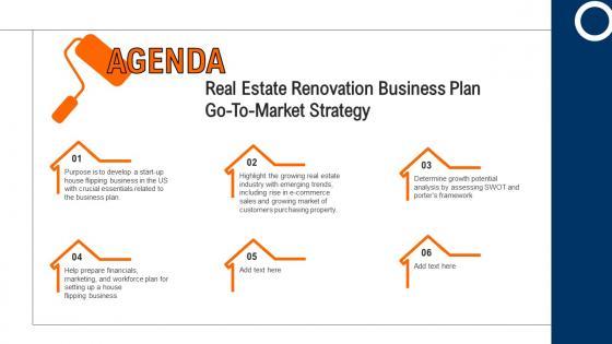 Whether you have daily or monthly meetings, a brilliant presentation is necessary. Agenda Real Estate Renovation Business Plan Go To Market Strategy Clipart Pdf can be your best option for delivering a presentation. Represent everything in detail using Agenda Real Estate Renovation Business Plan Go To Market Strategy Clipart Pdf and make yourself stand out in meetings. The template is versatile and follows a structure that will cater to your requirements. All the templates prepared by Slidegeeks are easy to download and edit. Our research experts have taken care of the corporate themes as well. So, give it a try and see the results. Our Agenda Real Estate Renovation Business Plan Go To Market Strategy Clipart Pdf are topically designed to provide an attractive backdrop to any subject. Use them to look like a presentation pro.