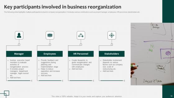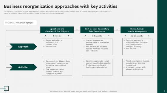 Improve your presentation delivery using this Business Reorganization Ppt Powerpoint Presentation Complete Deck With Slides Support your business vision and objectives using this well-structured PPT deck. This template offers a great starting point for delivering beautifully designed presentations on the topic of your choice. Comprising eighteen this professionally designed template is all you need to host discussion and meetings with collaborators. Each slide is self-explanatory and equipped with high-quality graphics that can be adjusted to your needs. Therefore, you will face no difficulty in portraying your desired content using this PPT slideshow. This PowerPoint slideshow contains every important element that you need for a great pitch. It is not only editable but also available for immediate download and utilization. The color, font size, background, shapes everything can be modified to create your unique presentation layout. Therefore, download it now. Our Business Reorganization Ppt Powerpoint Presentation Complete Deck With Slides are topically designed to provide an attractive backdrop to any subject. Use them to look like a presentation pro.