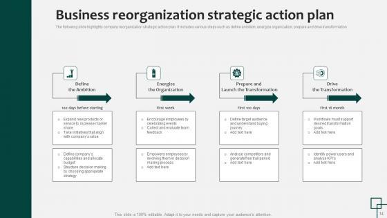 Share a great deal of information on the topic by deploying this Job Position Reorganization Communication Plan Ppt Powerpoint Presentation Complete Deck With Slides Support your ideas and thought process with this prefabricated set. It includes a set of fourteen slides, all fully modifiable and editable. Each slide can be restructured and induced with the information and content of your choice. You can add or remove large content boxes as well, to make this PPT slideshow more personalized. Its high-quality graphics and visuals help in presenting a well-coordinated pitch. This PPT template is also a resourceful tool to take visual cues from and implement the best ideas to help your business grow and expand. The main attraction of this well-formulated deck is that everything is editable, giving you the freedom to adjust it to your liking and choice. Changes can be made in the background and theme as well to deliver an outstanding pitch. Therefore, click on the download button now to gain full access to this multifunctional set. Our Job Position Reorganization Communication Plan Ppt Powerpoint Presentation Complete Deck With Slides are topically designed to provide an attractive backdrop to any subject. Use them to look like a presentation pro.