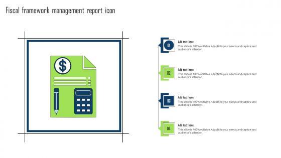 Pitch your topic with ease and precision using this Fiscal Framework Management Report Icon Download Pdf. This layout presents information on Fiscal Framework, Management Report Icon. It is also available for immediate download and adjustment. So, changes can be made in the color, design, graphics or any other component to create a unique layout. Our Fiscal Framework Management Report Icon Download Pdf are topically designed to provide an attractive backdrop to any subject. Use them to look like a presentation pro.