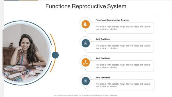 Introducing our well designed Functions Reproductive System In Powerpoint And Google Slides Cpb. This PowerPoint design presents information on topics like Functions Reproductive System. As it is predesigned it helps boost your confidence level. It also makes you a better presenter because of its high-quality content and graphics. This PPT layout can be downloaded and used in different formats like PDF, PNG, and JPG. Not only this, it is available in both Standard Screen and Widescreen aspect ratios for your convenience. Therefore, click on the download button now to persuade and impress your audience. Our Functions Reproductive System In Powerpoint And Google Slides Cpb are topically designed to provide an attractive backdrop to any subject. Use them to look like a presentation pro.