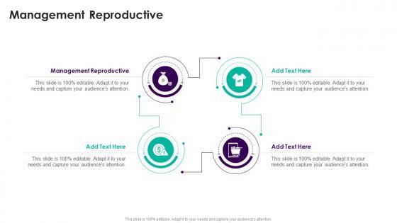 Presenting our innovatively designed set of slides titled Management Reproductive In Powerpoint And Google Slides Cpb. This completely editable PowerPoint graphic exhibits Management Reproductive that will help you convey the message impactfully. It can be accessed with Google Slides and is available in both standard screen and widescreen aspect ratios. Apart from this, you can download this well structured PowerPoint template design in different formats like PDF, JPG, and PNG. So, click the download button now to gain full access to this PPT design. Our Management Reproductive In Powerpoint And Google Slides Cpb are topically designed to provide an attractive backdrop to any subject. Use them to look like a presentation pro.