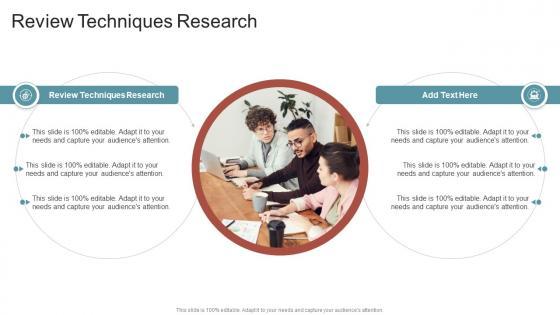 Presenting our innovatively-designed set of slides titled Review Techniques Research In Powerpoint And Google Slides Cpb. This completely editable PowerPoint graphic exhibits Review Techniques Research that will help you convey the message impactfully. It can be accessed with Google Slides and is available in both standard screen and widescreen aspect ratios. Apart from this, you can download this well-structured PowerPoint template design in different formats like PDF, JPG, and PNG. So, click the download button now to gain full access to this PPT design. Our Review Techniques Research In Powerpoint And Google Slides Cpb are topically designed to provide an attractive backdrop to any subject. Use them to look like a presentation pro.