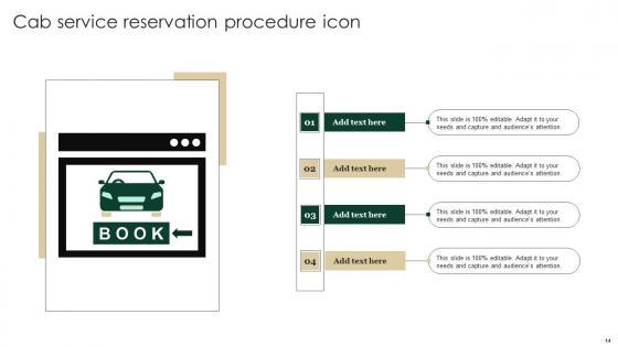 Pitch your topic with ease and precision using this Cab Service Reservation Procedure Icon Elements Pdf. This layout presents information on Cab Service Reservation, Procedure Icon. It is also available for immediate download and adjustment. So, changes can be made in the color, design, graphics or any other component to create a unique layout. Our Cab Service Reservation Procedure Icon Elements Pdf are topically designed to provide an attractive backdrop to any subject. Use them to look like a presentation pro.