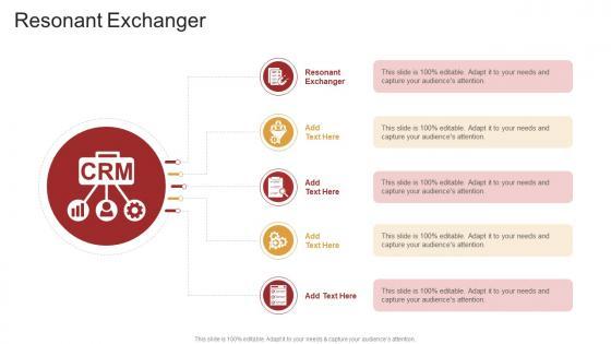 Introducing our well designed Resonant Exchanger In Powerpoint And Google Slides Cpb. This PowerPoint design presents information on topics like Resonant Exchanger. As it is predesigned it helps boost your confidence level. It also makes you a better presenter because of its high quality content and graphics. This PPT layout can be downloaded and used in different formats like PDF, PNG, and JPG. Not only this, it is available in both Standard Screen and Widescreen aspect ratios for your convenience. Therefore, click on the download button now to persuade and impress your audience. Our Resonant Exchanger In Powerpoint And Google Slides Cpb are topically designed to provide an attractive backdrop to any subject. Use them to look like a presentation pro.