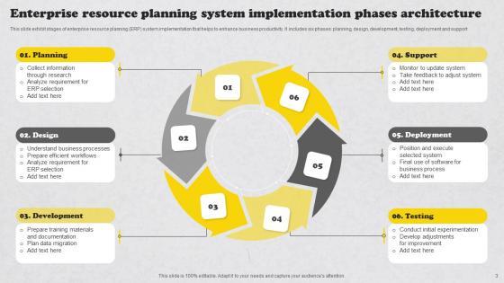 Improve your presentation delivery using this Enterprise Resource Planning System Architecture Ppt PowerPoint Presentation Complete Deck With Slides. Support your business vision and objectives using this well structured PPT deck. This template offers a great starting point for delivering beautifully designed presentations on the topic of your choice. Comprising forteen this professionally designed template is all you need to host discussion and meetings with collaborators. Each slide is self explanatory and equipped with high quality graphics that can be adjusted to your needs. Therefore, you will face no difficulty in portraying your desired content using this PPT slideshow. This PowerPoint slideshow contains every important element that you need for a great pitch. It is not only editable but also available for immediate download and utilization. The color, font size, background, shapes everything can be modified to create your unique presentation layout. Therefore, download it now. Our Enterprise Resource Planning System Architecture Ppt PowerPoint Presentation Complete Deck With Slides are topically designed to provide an attractive backdrop to any subject. Use them to look like a presentation pro.