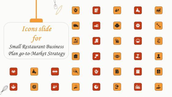 Help your business to create an attention-grabbing presentation using our Icons Slide For Small Restaurant Business Plan Go To Market Strategy Portrait Pdf set of slides. The slide contains innovative icons that can be flexibly edited. Choose this Icons Slide For Small Restaurant Business Plan Go To Market Strategy Portrait Pdf template to create a satisfactory experience for your customers. Go ahead and click the download button. Our Icons Slide For Small Restaurant Business Plan Go To Market Strategy Portrait Pdf are topically designed to provide an attractive backdrop to any subject. Use them to look like a presentation pro.