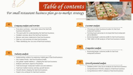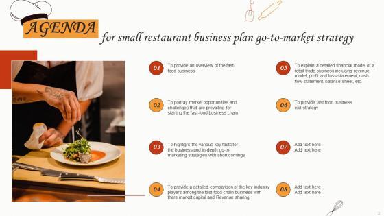 Whether you have daily or monthly meetings, a brilliant presentation is necessary. Agenda For Small Restaurant Business Plan Go To Market Strategy Topics Pdf can be your best option for delivering a presentation. Represent everything in detail using Agenda For Small Restaurant Business Plan Go To Market Strategy Topics Pdf and make yourself stand out in meetings. The template is versatile and follows a structure that will cater to your requirements. All the templates prepared by Slidegeeks are easy to download and edit. Our research experts have taken care of the corporate themes as well. So, give it a try and see the results. Our Agenda For Small Restaurant Business Plan Go To Market Strategy Topics Pdf are topically designed to provide an attractive backdrop to any subject. Use them to look like a presentation pro.