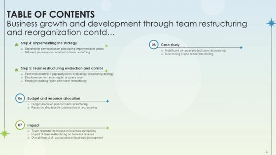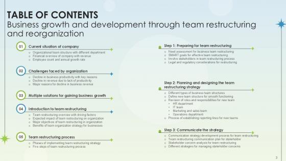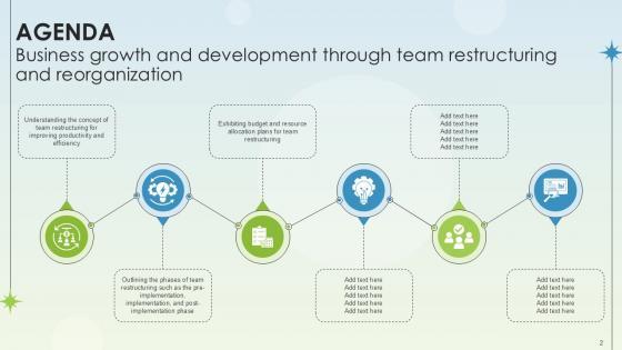 Take advantage of this well-researched and professionally-designed Business Growth And Development Through Team Restructuring And Reorganization Ppt Slide to ace your next business meeting. Use this PPT complete deck to impress the management with your ideas for business growth and revenue increase. Use the seventy one-slide Template Bundle to leave no stone unturned as you present each step of your process. Employ the visual tools within the slides such as graphs, charts, and tables to ensure that the audience can never look away from the presentation. With attractive visuals, easy to understand structure, and your knowledge, your presentation will have the attention it deserves. Download this PPT Template from the link below. Our Business Growth And Development Through Team Restructuring And Reorganization Ppt Slide are topically designed to provide an attractive backdrop to any subject. Use them to look like a presentation pro.
