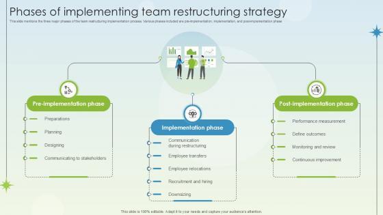 This slide mentions the three major phases of the team restructuring implementation process. Various phases included are pre implementation, implementation, and post implementation phase Get a simple yet stunning designed Phases Of Implementing Team Restructuring Strategy Business Growth Ppt Example. It is the best one to establish the tone in your meetings. It is an excellent way to make your presentations highly effective. So, download this PPT today from Slidegeeks and see the positive impacts. Our easy-to-edit Phases Of Implementing Team Restructuring Strategy Business Growth Ppt Example can be your go-to option for all upcoming conferences and meetings. So, what are you waiting for Grab this template today. This slide mentions the three major phases of the team restructuring implementation process. Various phases included are pre implementation, implementation, and post implementation phase
