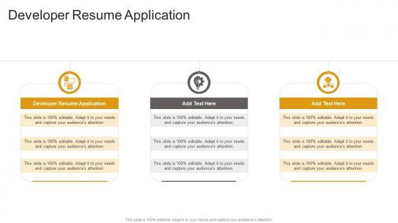 Introducing our well-designed Developer Resume Application In Powerpoint And Google Slides Cpb. This PowerPoint design presents information on topics like Developer Resume Application. As it is predesigned it helps boost your confidence level. It also makes you a better presenter because of its high-quality content and graphics. This PPT layout can be downloaded and used in different formats like PDF, PNG, and JPG. Not only this, it is available in both Standard Screen and Widescreen aspect ratios for your convenience. Therefore, click on the download button now to persuade and impress your audience. Our Developer Resume Application In Powerpoint And Google Slides Cpb are topically designed to provide an attractive backdrop to any subject. Use them to look like a presentation pro.